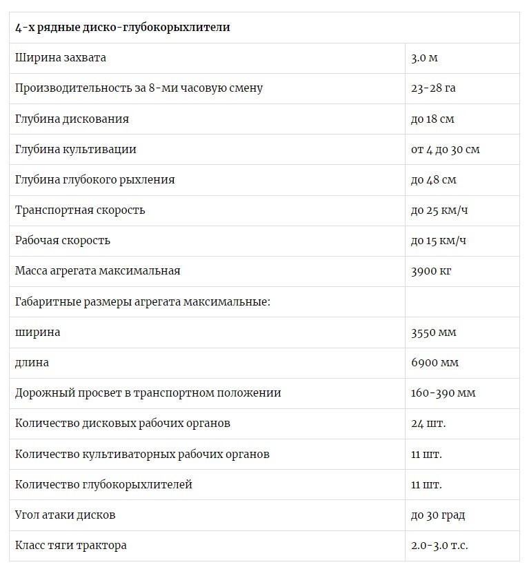 Диско-глубокорыхлители это многофункциональные почвообрабатывающие агрегаты, позволяющие за счет сменных рабочих органов выполнять: дискование почвы на глубину до 150 мм, предпосевную культивацию почвы на глубину 40-120 мм, глубокую культивацию почвы на глубину до 300мм, глубокое рыхление почвы с целью разрушения плужной подошвы на глубину до 480мм.