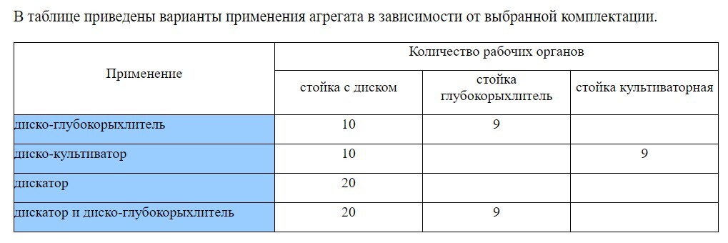 Эти операции могут выполняться агрегатом как отдельно, так и в различных комбинациях, например: дискование одновременно с рыхлением. При этом, в отличии от обработки плугом, рыхление почвы производится без оборота пласта, чем не нарушается взаимное расположение в почве аэробных и анаэробных бактерий. Это при заделке пожнивних остатков на глубину до 10-12 см, создает условия для увеличения содержания гумуса в почве, т.е. растет ее плодородие.