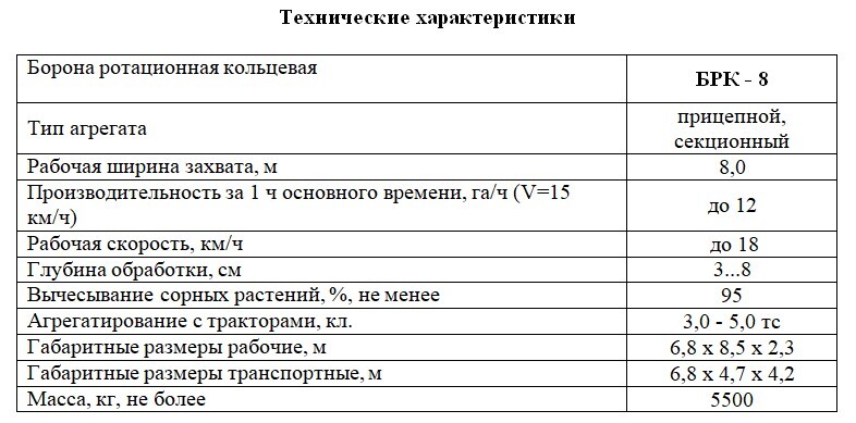 · Эффективное влагосбережение. Создание уплотненной почвенной прослойки на глубине обработки почвы (регулировки - от 3 до 8 см.) и формирование над ней мульчирующего слоя. Образованный, таким образом, «гидрозамок» препятствует испарению влаги из нижних слоёв почвы, и позволяет эффективно аккумулировать в этом слое выпадающие осадки, использовать утренние и вечерние росы. За счёт подповерхностного прикатывания рабочими плоскостями колец сформированное твёрдое ложе будет иметь заданную глубину и границу почвенной влаги. · Высококачественное выравнивание поля достигается перемещением почвы влево и вправо по ходу движения. · Эффективная борьба с сорняками. В отличие от дисковых борон, удаление сорняков происходит без подрезания (метод вырывания). На обработанных фонах (рыхлённых) удаляются сорняки из глубины, существенно превышающей глубину обработки бороной почвы, фактически заменяя химпрополку. Особенности конструкции: - Работа кольцевых борон основана на использовании оригинальных рабочих органов, выполненных в виде ступенчатосдвоенных колец, имеющих форму усеченного конуса, собранных в батареи. - Батареидвухрядно расположены под угломк направлению движения агрегата, при этом большие основания колец направлены вперед по ходу движения. - На батареях установлены высококачественные серийные необслуживаемые подшипниковые узлы, выдерживающие большие осевые нагрузки. - Кольцевые бороны «БРК-8» имеют прочную секционную шарнирную раму с гидравлическим складыванием, осуществляющим быстрый перевод бороны в транспортное положение. Возможно применение 2-х борон «БРК-8» со сцепкой (ширина захвата агрегата 16,0 м). Варианты использования бороны: