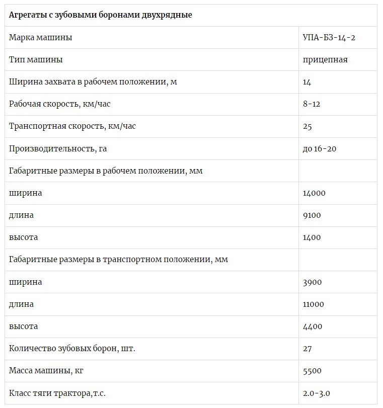 Характерной особенностью агрегата является возможность быстрого поднятия борон с помощью гидравлики, что улучшает условия очистки, исключает поломки и деформацию поводков борон на поворотах. Агрегат легко перестраивается в транспортное положение, при этом ширина в транспортном положении обеспечивает хорошую проходимость по узким дорогам.