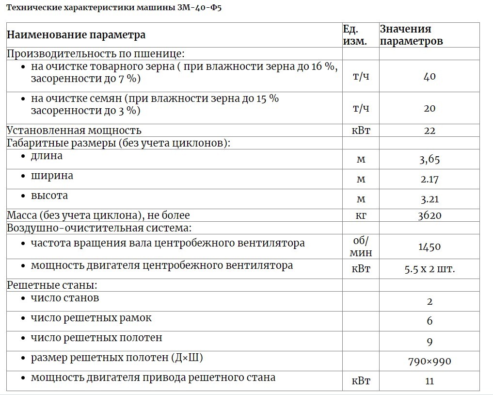 Отличительные преимущества ЗМ-40Ф5 перед аналогами Качество очистки зерна превосходит отечественные и зарубежные аналоги за счет высокоэффективной воздушно-очистительной системы и оптимальной площади решет. Воздушная и решетная системы машины созданы на основе последних научных достижений. На машине два вертикальных пневмосепарирующих канала, каждый канал имеет нижнюю зону сепарации. Причем первый канал, очищающий зерно до решет более мощный за счет своих размеров. Его высота больше в 1,3 раза, чем у аналогов. За счёт увеличенной скорости движения решетных станов решета работают на форсированных режимах, что увеличивает производительность решет в два раза и это позволяет: