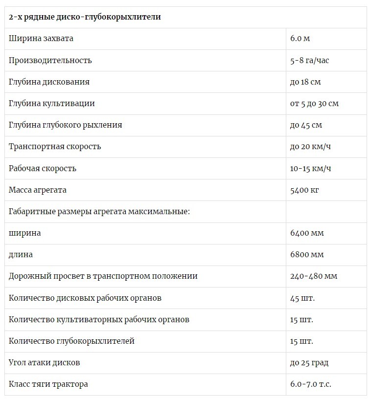 Диско-глубокорыхлители это многофункциональные почвообрабатывающие агрегаты, позволяющие за счет сменных рабочих органов выполнять: дискование почвы на глубину до 150 мм, предпосевную культивацию почвы на глубину 40-120 мм, глубокую культивацию почвы на глубину до 300мм, глубокое рыхление почвы с целью разрушения плужной подошвы на глубину до 480мм.