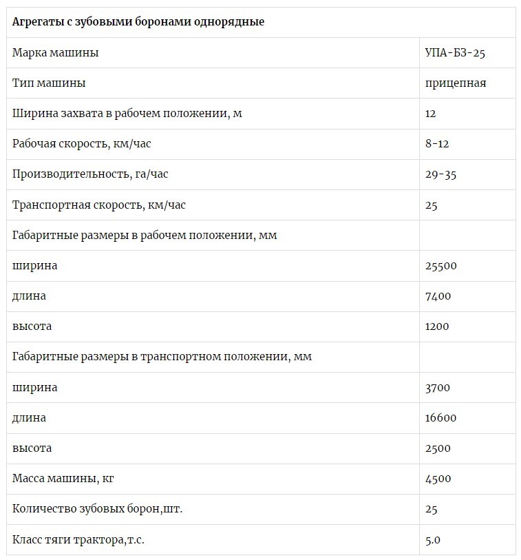 Характерной особенностью агрегата является возможность быстрого поднятия борон с помощью гидравлики, что улучшает условия очистки, исключает поломки и деформацию поводков борон на поворотах.