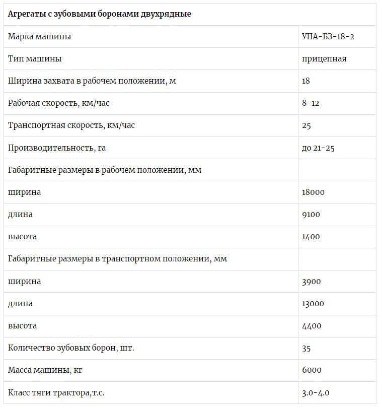 Характерной особенностью агрегата является возможность быстрого поднятия борон с помощью гидравлики, что улучшает условия очистки, исключает поломки и деформацию поводков борон на поворотах. Агрегат легко перестраивается в транспортное положение, при этом ширина в транспортном положении обеспечивает хорошую проходимость по узким дорогам.